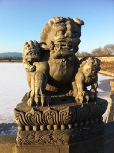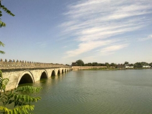 かつてこの地を訪れたマルコ・ポーロはその著書『東方見聞録』の中で「世界中どこを探しても匹敵するものがないほどの見事さ」とこの橋を記しました。その事から西欧では「マルコポーロの橋(英:Marco Polo Bridge)」とも呼ばれています。橋は1192年に完成、その後たびたび修復が施されてきました。全長は266.5m、橋の欄干にはそれぞれが異なる表情をした獅子の彫像が501基置かれている。通行人が正確に数えることは難しいことから中国では「数えられないもの」のことを「盧溝橋の獅子」と言い表すこともあるそうです。橋のたもとには乾隆帝の筆と伝えられる「盧溝暁月」の石碑があり、皇帝もここで月を見たという事から、現在も中秋の明月の夜には月見に多くの市民が訪れています。盧溝橋事件が起こったことでも知られるこちらですが、東側には明末に建設された城郭都市・宛平県城があり、城内には中国人民抗日戦争紀念館があります。