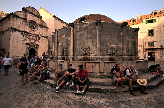 オノフリオの大噴水はドゥブロヴニクの旧市街のピレ門からすぐの場所にある大噴水です。この大噴水はナポリのオノフリオ・デッラ・カヴァが1438年に造った大きな噴水で、12km離れた源泉から水を引いて市内の2か所に設けられています。17世紀の地震で噴水の装飾の多くが失われたが、水の噴き出し口となっている顔のレリーフは、今もその姿をとどめており人々の憩いの場となっています。