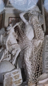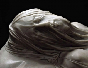 館内に並ぶ幾つもの彫刻のうち、中でも秀作とされているのは、ジュゼッペ・サンマルティーノによる『聖骸布におおわれたキリスト像』。大理石を彫ったとは思えないほど繊細なヴェールと、その下に横たわる今にも目を開けそうなキリストに、くぎ付けになる人も多い。