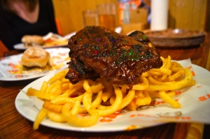 まずは、アテンダントガールがトレードマークのオレンジ色のホットパンツと白いタンクトップでお出迎え。席に案内してくれると、まずはドリンクメニュー。お料理はひとつひとつがボリュームがあるので、できれば何人かで分け合ってちょうどいいですね。