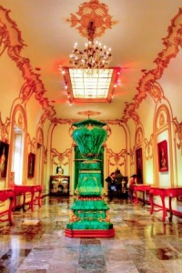 広いチャプルテペックの小高い丘の上に位置するチャプルテペック城。現地ナウワトル語で「バッタの丘」を表します。1785年スペイン総督の夏の別荘として建築が始まりましたが、メキシコ革命後、陸軍学校や、天体観測所として使用されることになります。その後、フランス侵略戦争により、1864年から3年間のフランスの統治時代マキシミリアム皇帝がメキシコへやってきて、この建物を自身の住まいにすべく改装を命じました。そして1939年まで大統領官邸として使用されます。