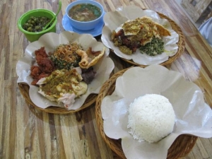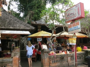 こちらはウブドで一番有名なバビグリン(豚の丸焼き)のお店。豚の丸焼きは毎朝、早朝から仕込みが始まり、開店に合わせて作られます。その皮はパリパリでお肉はジューシー。味は様々なスパイスで味付けされておりとってもスパイシーです。人気は野菜炒めがセットになっている500円くらいのメニュー。どれもこれもスパイスが効いていてけっこー辛いのですが、ちゃんと子供用に辛さを抑えたメニューも用意されています!その”美味しい”という噂を聞きつけ、今では多くの観光客が訪れる人気のレストランです。王宮のすぐ横に位置することもあり、ランチタイムは特に混雑します。なお、午後になると品切れの物も出てきます、ぜひ開店直後のさばきたてを試してみてください♪