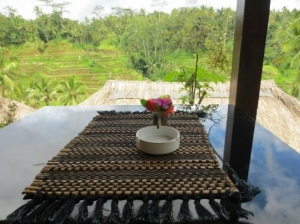 もしテガララン・ライステラスに訪れたら、ぜひこのお店の事を思い出してみてください。こちらは主にインドネシア料理を提供するレストラン。景色側の席に座れば目の前には美しいライステラス(棚田)がわ~っと広がります。お料理も勿論良いのですが、一面緑、緑、緑!この為に来ているといっても過言でない程ばっちりなロケーションです。