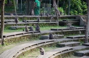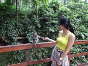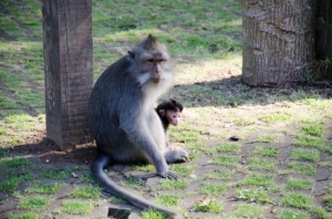 モンキーフォレストとは、ウブドの中心部である「モンキーフォレスト通り」の南側にある野生猿の自然保護区です。居住しているのはクラ・バリ(オナガザル)という、世界で最も広範囲に分布する種。現在は約250頭、3つのグループに分かれたサルが暮らしています。入り口(3箇所あります)でバナナ(15本位/Rp.50,000)を買えばわーっと寄ってきますが、ウルワツ寺院のサルと比べると大人しいので是非触れ合ってみてください。しかしやはり、サルの興味をひく光る物、ぶらぶらするもの、サングラスは盗られてしまうことがあるので注意が必要です。ちなみに森の中には3つの寺院もあります。西は一番大きなお寺、シヴァ神を祭るダルム・アグン・パダントゥガル寺院が位置している。神聖な場所であり、ガベン(火葬式)が行われるまで一時的に遺体を埋めておくお墓が用意されています。