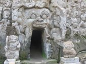 こちらは11世紀頃に造られたヒンドゥー教の遺跡。1923年に発見されました。小柄な遺跡ですがまだ解明されていないことも多く、バリの他の観光地とは一風変わって面白い所です。名前の「ゴア」とは洞窟、「ガジャ」は象という意味で、バリ島に象はいないためこの「象」は「大きな洞窟」という意味で名づけられたと考えられています。洞窟は名称に反して小柄で細長く、内部には質素な祭壇が設けられています。その他にも1954年になって発見された沐浴場もあり、壁には6人の女神の像が彫り込まれている。短パンやミニスカートの方は入り口でサロン(腰に巻く布)をレンタルして入場できます。