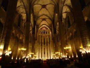 中世のヨーロッパでは教会建設は100年以上を費やすこともあり、その中で建築の様式の変化が度々見られました。しかし、この教会は14世紀の55年しか費やさず、唯一の純カタルーニャゴシック建築の教会と言えます。無駄な装飾がなく簡潔な造りが、カタルーニャゴシックの特徴の1つです。