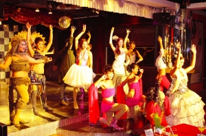 ビバ! ラス・ベガスのニューハーフショーは、大人だけでなくお子様連れでもご覧いただけるような構成のエンターテインメント・ショーです。1日2回、それぞれ60分のステージは、歌あり、踊りあり、コメディありの楽しいショーでニューハーフたちがおもてなしします。