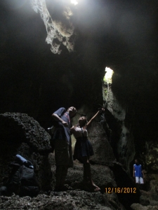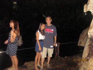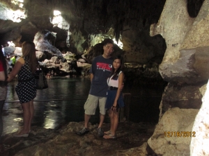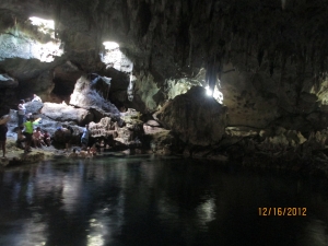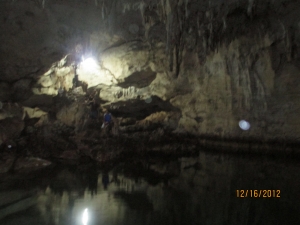 洞窟の中にある大きな池では、泳ぐこともできます。 この池の水は、地下水と海水がまじりあった水で少し匂いがあるようです。