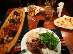 ハジドラガノヴィテ・カシュティはソフィア中央駅から、マリアルイザ通りを南へ行き、路地へちょっと入ったところにあるレストランです。お店はブルガリアの古民家風の建物で店内には屋外の席と古民家風建物内に席が用意されています。様々な伝統的なブルガリア料理を楽しめ、地元の方からも観光客からも人気のあるレストランです。