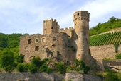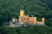マンスハウゼンの対岸のいきり立つ岩山に堂々と力強く、且つ優雅に立つロマンチックなラインシュタイン城の起源は10世紀とされていますが明確な資料はありません。14世紀初頭にはプロイセンのフリードリッヒ王子の夏の居城として改築され、このお城は数あるお城の中でも重要な建造物とされており、ライン川渓谷の素晴らしい見どころの1つでもあります。ネオ·ゴシック様式のこのお城では砲塔やテラスの鉄階段が見られます。城内も見応え満載で貴重なステンドグラスや壁画、ルネサンス様式の暖炉、貴重な家具があります。