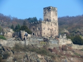 グーテンフェルス城は1257年よりファルケンシュタイナー家が所有していた当時はカウプ城と呼ばれ、関税として勤めていました。この城の構造は建築芸術に於けるライン川沿いの最も優れた一例とされています。その後1277年以降はカウプ城はプファルツの有権者ルードヴィッヒ2世の城となりますが、1504年ヘッセン方伯ヴィルヘルム2世は、城とカウプの町を包囲攻撃に失敗します。以降この城はグーテンフェルズ(硬い岩)城と改名されます。後、1889年から1892年にかけて修築され、現在ではホテルとして使われています。