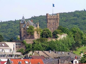 ワインの町として名高い町、リューデスハイムのライン川畔に一千年規模の長い歴史を持つ古城、ブレムザー城があります。その起源は4世紀とも言われていますが史料上では10世紀にマインツ大司教のための水城として建設されたとされてり、実際にマインツ大司教は1548年〜1668年まで居城していました。