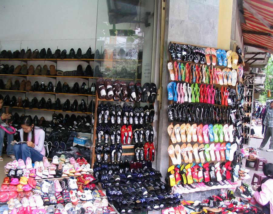 靴やサンダルを買うなら、ハンダウ通りに行けば大抵の物はそろいます。ホアンキエム湖の東、記念碑(Soldiers Monuments)の横、タンロン水上人形劇場の直ぐ裏の通りです。値段の交渉も楽しみのひとつ。