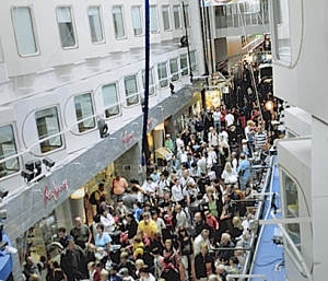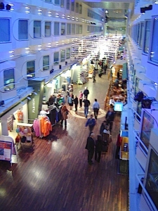 吹き抜けの広々としたプロムナードの両側にはキャビンがずらり。