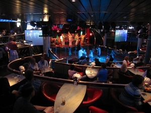 夜になると照明も変わりロマンチックに。プロムナードには免税店もたくさんあり、食料品、お菓子、Tシャツ、雑貨などお土産が沢山売られています。北欧の人々は税金付加のお酒を大量に買い込みます。