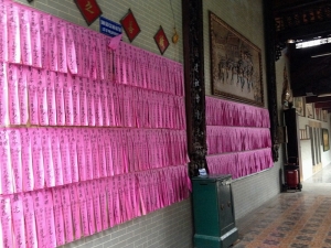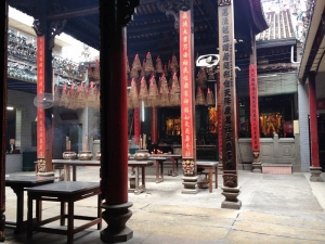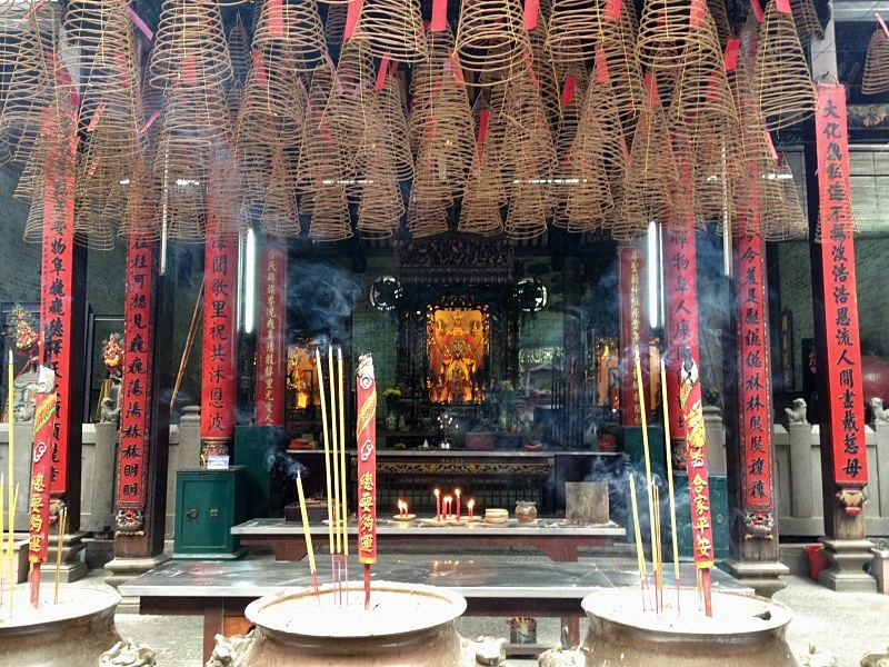 屋根や内部の緻密で美しい装飾や、一ヶ月程も燃え続けるという天井からぶら下がる巨大な渦巻き線香は見もの。今も昔も変わらない人々の篤い信仰を感じさせる。
