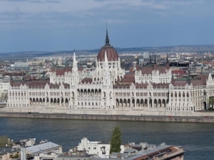 1885年起工、1904年に完成しました。イギリスのウェストミンスター宮殿同様ゴシック・リヴァイヴァル様式の建物でブダペストのシンボルとして有名です。建物長268m、建物幅123m、内部には、10の中庭、13の乗客兼貨物用エレベーター、27の門、29の階段室、691の部屋があります。内部にはフレスコ画、ゴブラン織などの美術品が陳列し、内部のお装飾品には50万の宝石と40kgの金が使用されており、世界で最も荘厳華麗な国会議事堂と言われています。また、建物高は96mと、聖イシュトバーン大聖堂とともに、ブダペストで最も高い建物としても知られています。