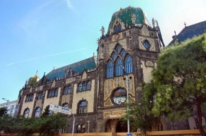 工芸美術館は1893年から1896年にハンガリー建国1000年記念として建てられたもので、ハンガリーの芸術家レヒネル・エデン(Lechner Odon)が建築しました。建物はアール・ヌーヴォー様式で建物自体はハンガリーの荘厳建築のなかで指折りのものとして必ずガイドに載っているほど有名です。外見の風体に限らず、実は内部の作りもアールヌーボー様式でとても見ごたえがあります。