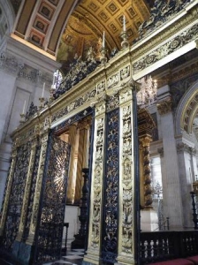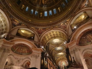 まずセント・ポール大聖堂の中へ入るとその広さに驚くことでしょう!またパイプオルガンの大きさや内装の豪華さ、そしてとにかく天井は息を飲むほどの美しさです。直径約34メートルのドームの天井に描かれているのは「聖パウロの一生」で、金色が美しく輝いています。