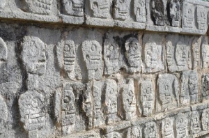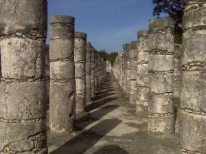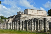 戦士の神殿の下には、何百もの石の柱が整然と並んでいてとても神秘的な感覚に襲われます。そしてその石碑には戦士のレリーフが描かれています。さらに神殿は漆喰と石彫りで動物が描かれています。そして、階段上にはおなじみのチャク・モールの像が置かれていましたが、現在では登ることが出来ないため見学は出来ません。このチャクモールの像の上に、生け贄の心臓が置かれて、太陽に祈りをささげていました。
