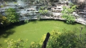 ピラミッドや神殿、球戯場がある芝生広場から、ジャングルの小道に入っていくと、マヤ遺跡に欠かせないセノーテと呼ばれる聖なる泉が現れます。雨の神チャックの住処と考えられていたセノーテには、雨が降らない時や豊作を願う時に、財宝や生贄の人間が投げ込まれたといいます。生け贄は子供から処女、男性にまで及び、生きたまま投げ込まれたといいます。スペイン人の記録によれば、放り込まれた女性の中には、後に泉から引き上げられ、吉兆を語ったとされているものもあります。