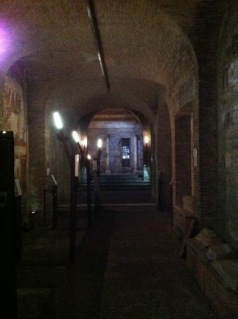 最下層です!こちらはミトラ教の祭壇。ミトラ教とは太陽神ミトラス(ミスラス)を主神とする密儀宗教で、古代ローマで紀元前1世紀~5世紀にかけて発展していました。