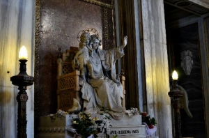 ローマにあるカトリック教会の聖堂。名称は「偉大なる聖母マリアにささげられた聖堂」の意で、教皇が建築させたローマの四大バシリカ(古代ローマ様式の聖堂)の一つに数えられています。元々この大聖堂は古代キュベレ神(古代ローマで信仰が広がった女神)の神殿があった場所に築かれました。数回にわたる改修と1348年の地震に伴う崩壊の危機を乗り越え、ローマのバシリカ様式の聖堂では唯一原構造を残している貴重な建築物です。「サンタ・マリア・マッジョーレ」(聖母マリアの聖堂)という名称には二つの意味があります。一つは世界の聖堂の中でも特に重要な教会、まさに母なる教会であるということ。第二にカトリック信仰において古代より尊重されてきた聖母マリアへの崇敬を表す聖堂であるということです。世界中に聖母マリアにささげられた聖堂がありますが、その中で最大のものがサンタ・マリア・マッジョーレ大聖堂なのです。