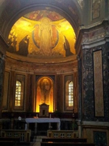 テルミニ駅そばにあるローマで最も古い教会のひとつ。ちょっと小さめの教会なのですが、モザイクがローマで一番美しいと評判です。メジャーな教会とはまた違った趣があるこの教会。右側のサン・ゼノーネ礼拝堂は金色のモザイクが天井や壁全体を覆っていて美しい。キリスト達の顔もどこか愛らしく、見ると暖かな気持になれるでしょう。ちなみに1ユーロを寄付するとライトアップされ、金色のモザイクがきらきらとかがやきます。薄暗いままでも良いには良いのですが、訪れた際は是非とも美しいモザイクをご堪能下さい。