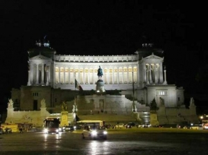 イタリア統一の立役者、初代国王ヴィットーリオ・エマヌエーレ2世の偉業を称えて建てられた記念堂です。美しい真っ白な外観が夜はさらに輝きます。こちらの写真は目の前にあるヴェネチア広場からの撮影です。ヴェネチア広場はロータリーとなっていて交通量が多いので車には十分注意してくださいね。