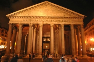 約2000年前に建造された神殿、パンテオン。元々は様々なローマ神を奉る万神殿でした。現在は修復されたものですが、とても保存状態が良く、現在もローマの人気観光スポットの一つです。