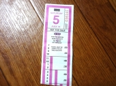 このような紙切れです。運転手によって、たまに90分以上使えるチケットをもらえることがあります。左端の数字は何時まで使えるかという表示です。これは6の下までちぎってありますので、6時まで使えます。