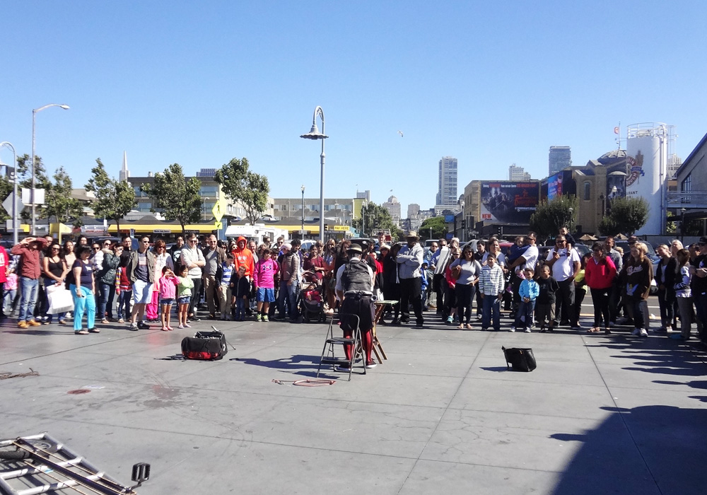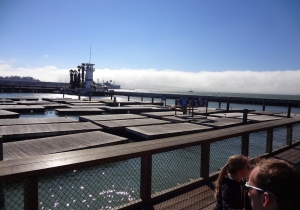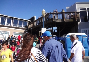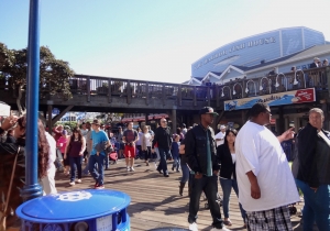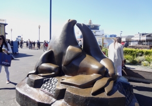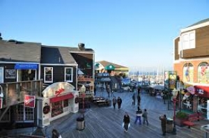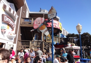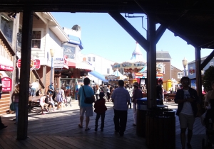 海に細長く延びるピア39は、その名のとおり、もとは桟橋として使われていた所。現在はフィッシャーマンズワーフで一番にぎやかなショッピングモールで、大人も子供も楽しめる人気スポットだ。波止場らしく、潮風と日差しで色あせた木造の建物は2階建てで、17棟の建物が木のデッキで結ばれており、レストラン13軒やショップなど110軒以上の店が軒を並べている。ピア39の端のKドックからは、野生のアシカの姿も眺められる。また、このKドックの近くには回転木馬が、中央にはミニコンサートやパフォーマンスが開かれるステージがある。