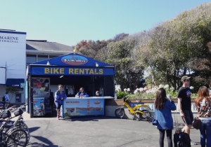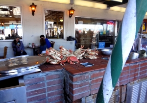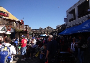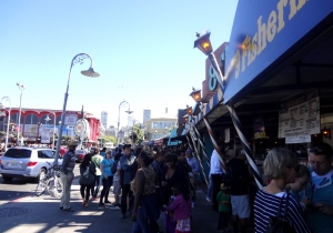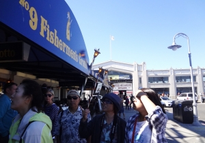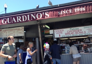 ゴールドラッシュの時代からイタリア人漁師の港として栄えたフィッシャーマンズワーフ。サンフランシスコではずせない観光スポット。お土産屋、レストランなど軒を連ね、いつも観光客で賑わう。ピア41にある有名な看板。隣にはいつも活気あふれ、観光客で込み合う屋台がある。ここで食べる蟹、クラムチャウダーは絶品。