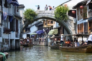 上海に来たら一度は行ってみたいのが近郊の水郷ですね。一番近いのは七宝鎮ですが、小柄で近すぎる故いつも混雑。水郷ならではの「中国情緒あふれるひととき」が過ごせる場所に「安くいきたい」という方にお勧めなのがこちら!朱家角は七宝の次に上海から近い、バス一本で行くことができる水郷なんです。しかも朱家角駅は終点なので、降りる場所で悩むこともありません♪運賃は普安路站から12元です(2014年6月現在)。さっそく、悠久のまったりタイムへむけて出発しましょう!朱家角の歴史は長く、宋代(960年-1279年)には市場が形成されていたそうです。小舟に乗って10分間、ゆったりとクルーズしたり...♪街の狭い路地に建ち並ぶ商店でお土産を買ったり、食べ歩きしたり...♪朱家角の名所である「放生橋」付近では放流用の金魚なんてのも売っていますよ。週末は込み合うことがありますが、手軽に行ける水郷です。