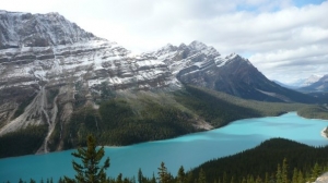 ボウ・サミットにある展望台に登ると、眼下にターコイズブルーをしたペイトー湖の全貌を臨むことができます。