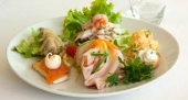 エビなどの甲殻類などをヴァラエティーに盛り付けた前菜。店により調理法が異なるが軽めの量と味付けがプリモピアット前に丁度いい。