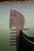 ”S”の形をしたメタルの船首は衝突の防御でもあり、その形は大運河の流れを、前側の6つの歯はヴェネツィアの6つの区域(サンタ・クローチェ、サン・ポーロ、カンナレージョ、カステッロ、サン・マルコ、ドルソドゥーロ)、後側の歯はジュデッカ島、最上部のアーチはリアルト橋を表している。