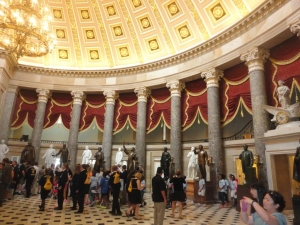 この白亜のドームを挟み、北側(左)が上院、南側(右)が下院の議場になっています。日々の議会の他、大統領の就任式もここで行われます。事前申込が必須ですが、無料ツアーでのみ内部の見学が可能です。