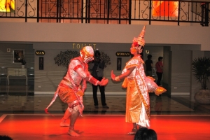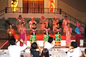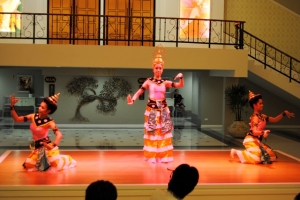 華麗なニューハーフ達により豪華なカリプソショーとは別に、2回のディナーの間に演じられるタイ古典舞踊は女性の踊り子数名が優美な舞を披露し、神の使いである猿のハヌマーンや美しいシーダ姫が登場する伝統舞踊の「ラーマキエン物語」も演じられ、、出演者はステージの上だけでなく客席の間も廻り、写真撮影にも応えてくれるサービスを提供してくれます。