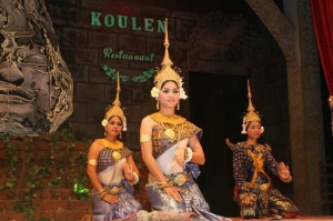 カンボジアの伝統舞踊アプサラダンスを楽しむディナーショー。昼間は遺跡めぐりでお疲れ!という方も、美味しいカンボジア料理を食べながら優雅なダンスや影絵に癒されますよ。