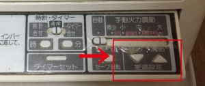 温度調整はこちらのボタンで可能です。チェックイン時には一般的に快適と思われる温度に設定してありますが、好みに合わせて調整してください。